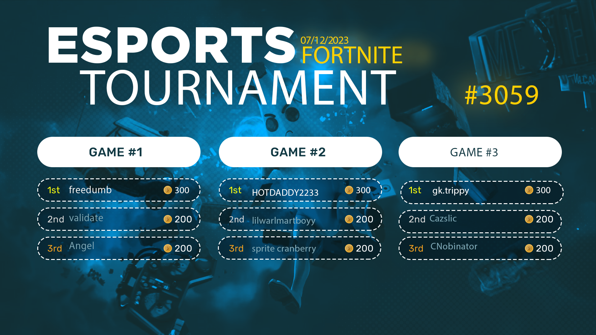 Esports Tournament #3059- Fortnite - 07/12/2023