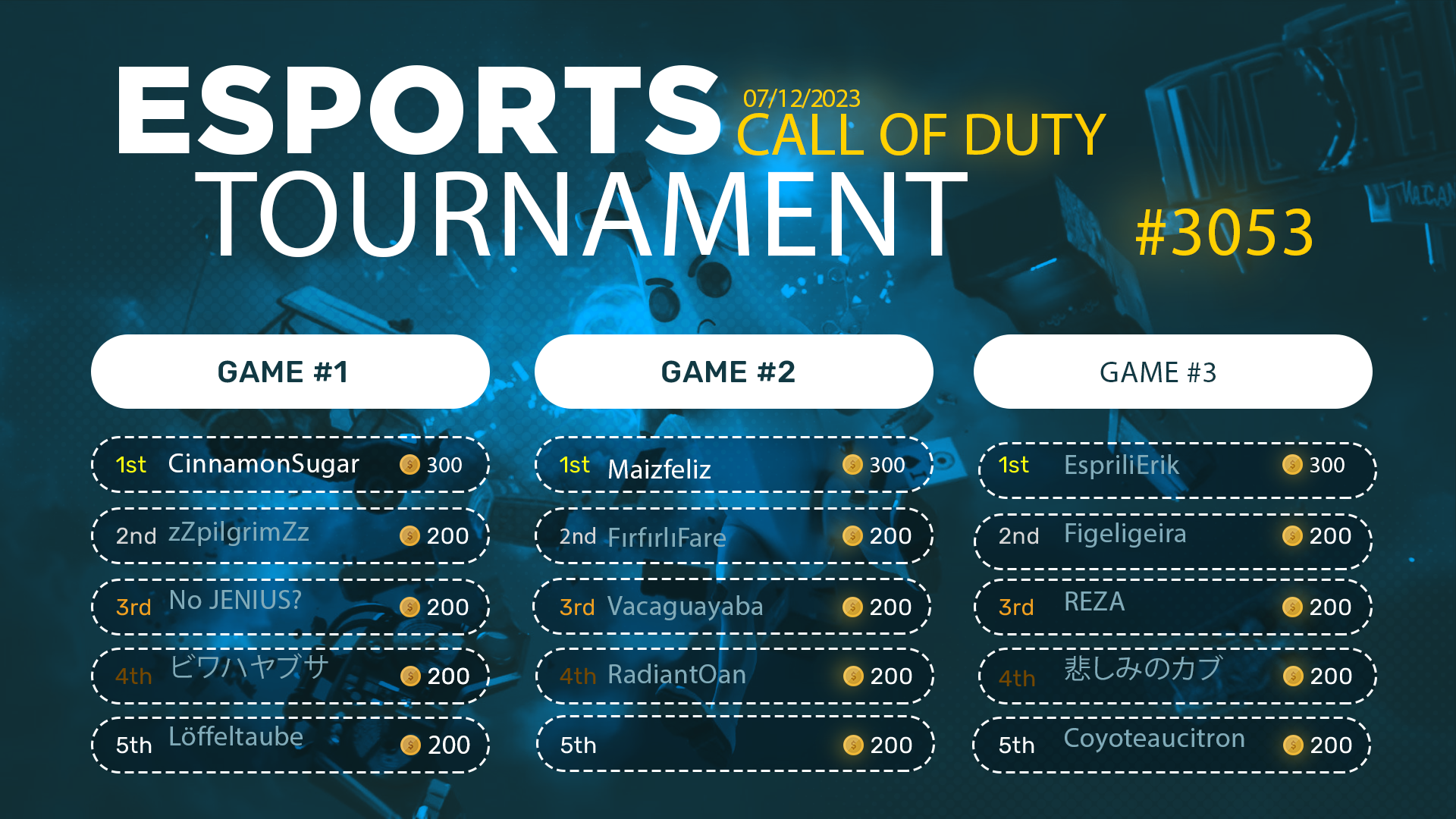 Esports Tournament #3053- COD - 07/12/2023