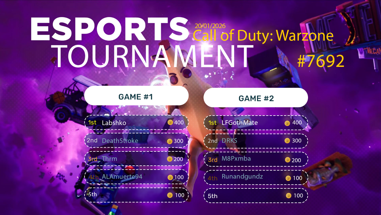 Esports Tournament #7692 - CodWarzone - 20/01/2026